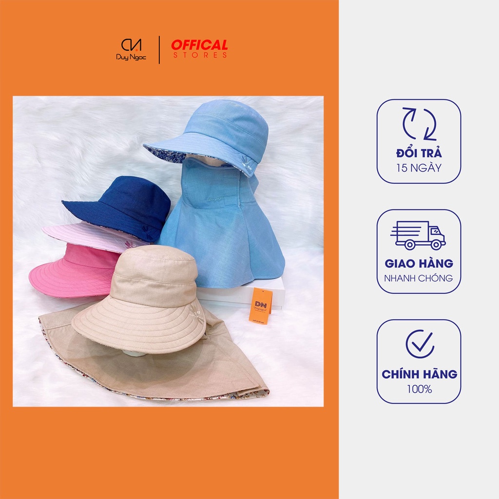 Giới thiệu Mũ nón chống nắng 3n1 kèm khẩu trang Duy Ngọc kiểu vành rộng màu trơn thêu hoa cao cấp, chống tia UV, chính hãng (8755)