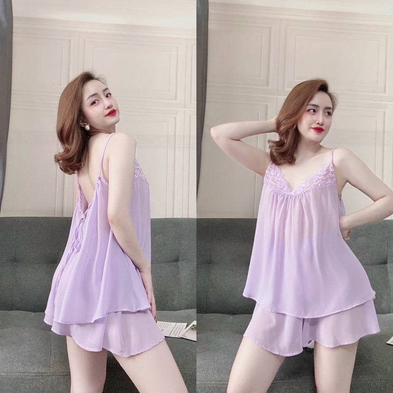 Giới thiệu Đồ bộ nữ 2 dây sexy quyến rũ Lụa bigsize dưới 72kg mặc thoải mái - hở lưng phối ren cao cấp
