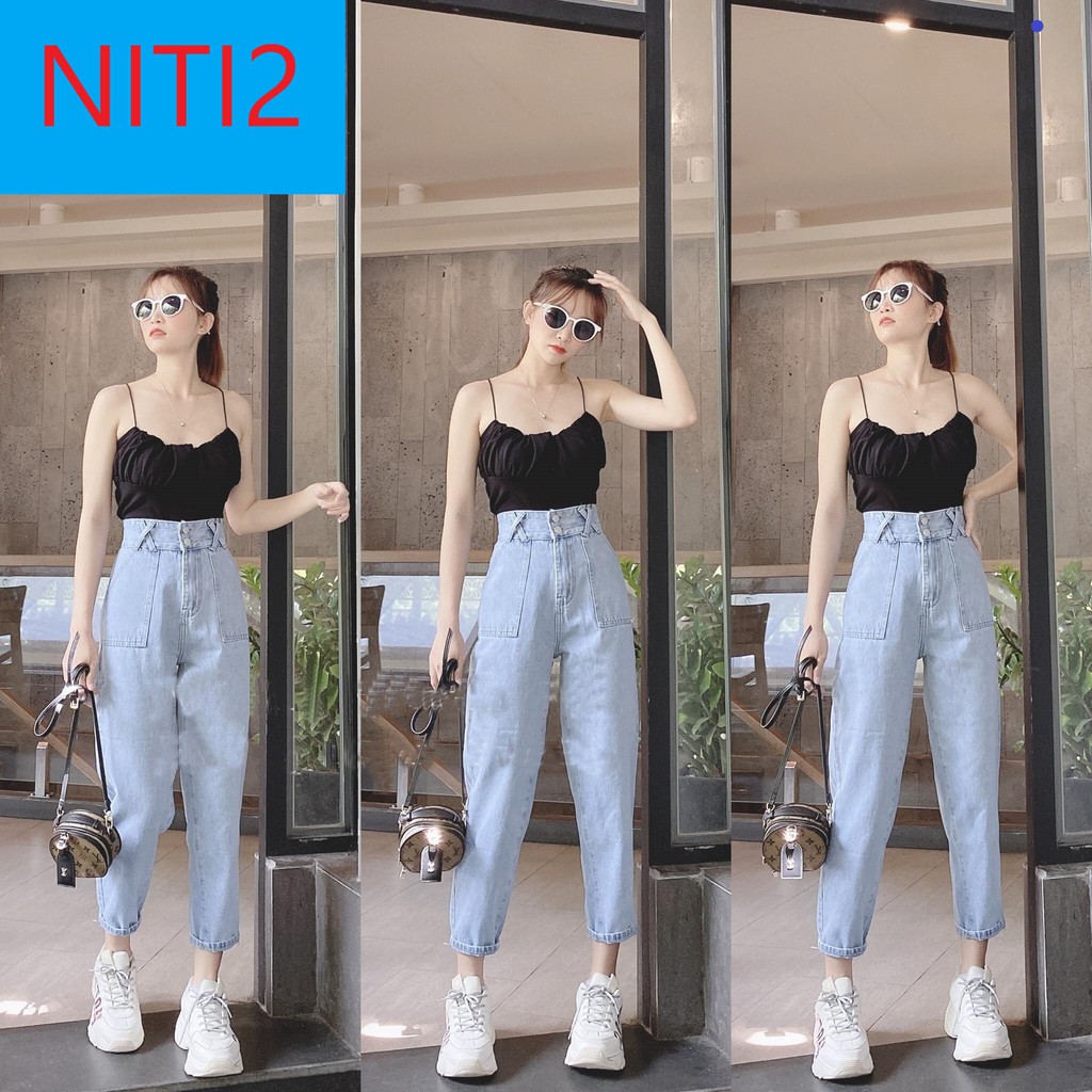 Thời Trang Nữ > Quần jeans || [ NY65 ] QUẦN BAGGY JEAN NỮ LƯNG CAO 2 TÚI ĐĨA CHÉO 2 NÚT LAI CUỐN MÀU XANH NHẠT CAO CẤP NITIQC ĐỦ SIZE S, M, L