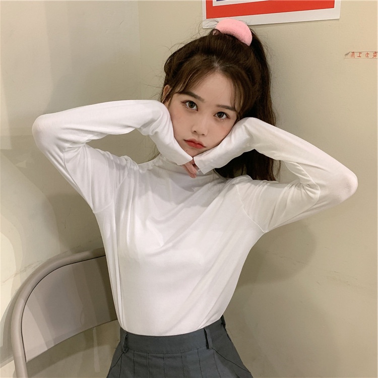 Giới thiệu [Quà tặng là kẹo] Áo thun nữ tay dài cổ cao ôm body, Áo phông nữ tay dài cổ lọ 40-60kg SUNA FASHION