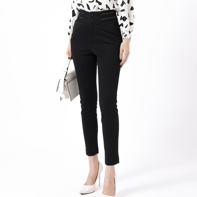 Quần âu nữ ống côn FIONA, quần công sở nữ túi chéo cạp cao diễu chỉ F350509