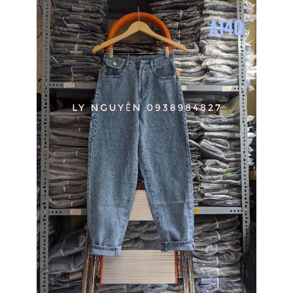 Giới thiệu Quần BAGGY bò Jean nữ lưng cao lai đạp cạp cao túi kiểu vải dày dặn không co giãn rộng đẹp form chuẩn dáng boi lai đạp