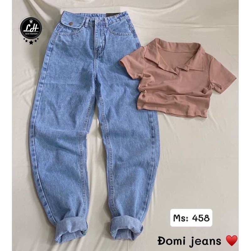 Giới thiệu Quần baggy jeans nữ 1 túi đắp màu xanh nhạt MS 458