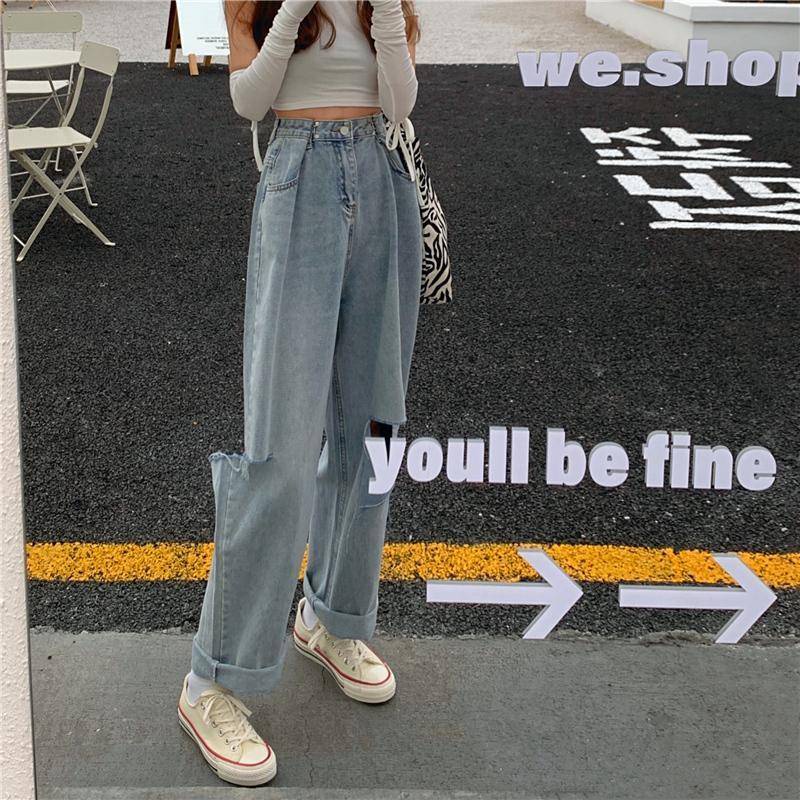 Giới thiệu Quần Baggy Jeans Nữ Lưng Cao Dáng Suông Ống Rộng Rách Gối, Quần Jeans Nữ Dáng Suông, Quần Jeans Nữ Ống Rộng