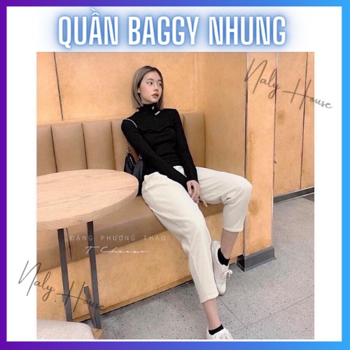 Quần Baggy Nhung size S M L XL Màu Đen, Be, Xanh, Hồng Hàng Loại 1