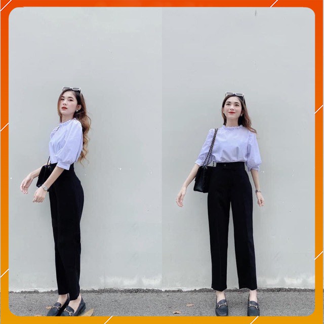 Giới thiệu Quần baggy nữ cạp cao cúc lệch [HÀNG XỊN] - Quần baggy nữ công sở vải tuyết mưa khuy cài - Mặc đi làm đi học đi chơi