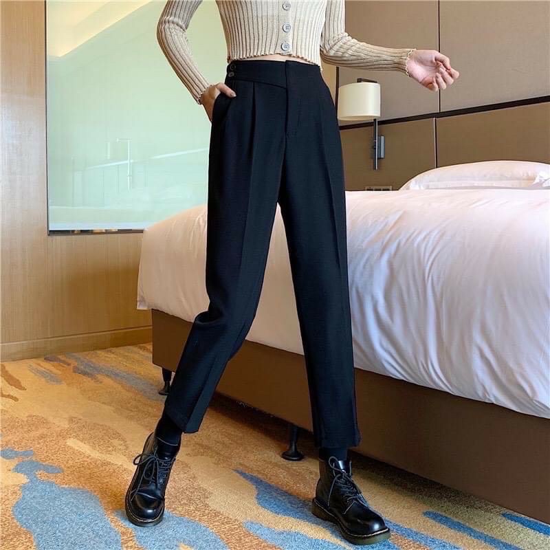 Thông tin sản phẩm quần baggy nữ cạp cao vạt khuy lệch bên hông