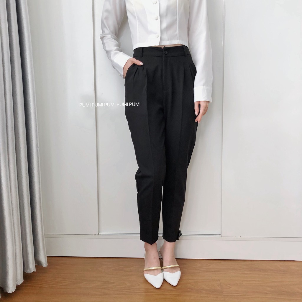 Quần baggy nữ dài kiểu công sở màu đen có 3 size SML dễ phối đồ có sẵn tại shop - Pumi