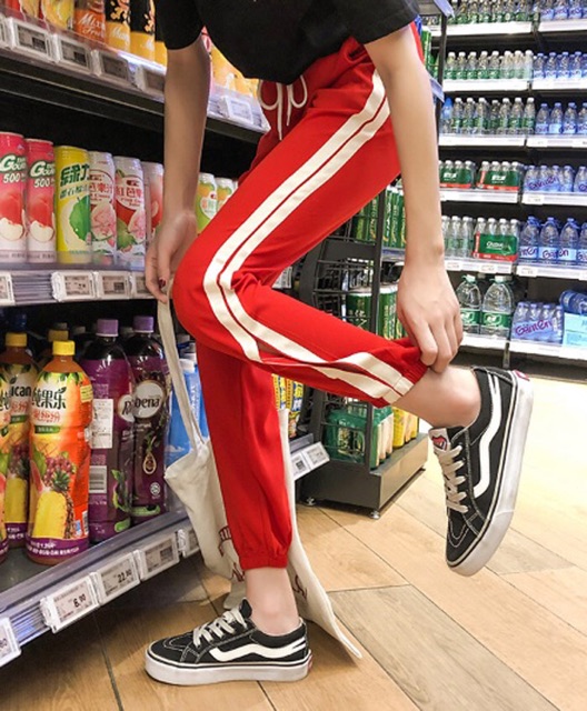 Thời Trang Nữ > Quần > Quần dài || Quần big size thể thao đỏ viền 2 sọc trắng ống bo size lớn 4Xl 70-85kg