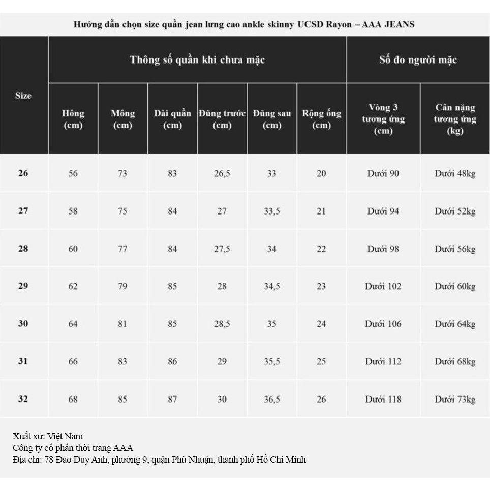 • Tên sản phẩm: Quần Bò Cạp Cao Dáng Skinny Aaa Jeans - UCSD Rayon