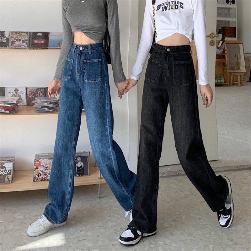Giới thiệu Quần bò ống rộng hai túi trước Hàn Quốc quần suông uzzlang