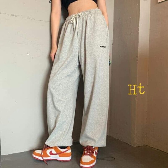 Quần bom thun dây rút gấu kéo ra thành ống suông rộng