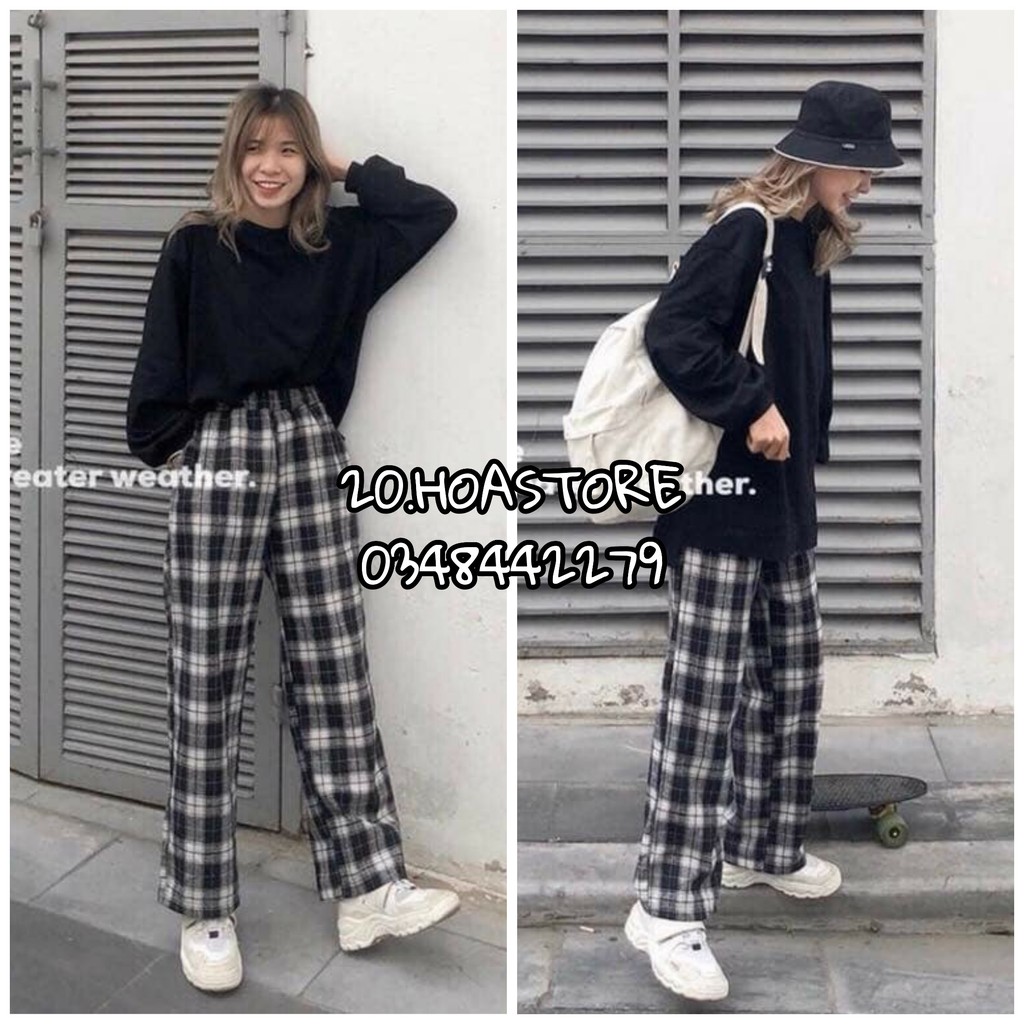 Giới thiệu QUẦN CULLOTE BAGGY CARO ĐEN PHỐI TRẮNG CẠP CHUN FORM RỘNG BASIC