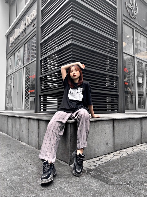 Giới thiệu Quần culottes kẻ caro xám kẻ đen