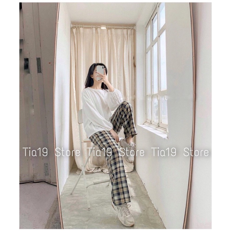 Giới thiệu Quần culottes kẻ ulzzang Tia19. Quần ống rộng loại 1 ( ẢNH THẬT)