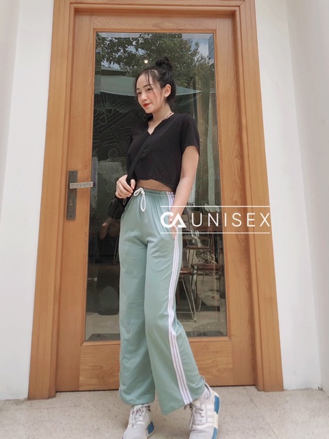 Giới thiệu Quần dài nữ 3 sọc ống rộng dáng suông ( Hình Thật 100% )