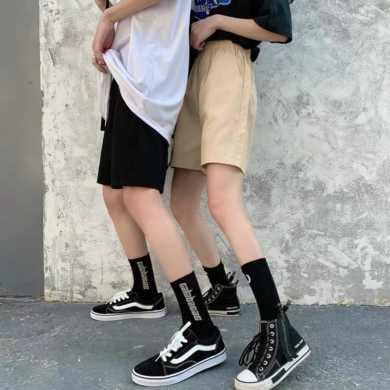Quần Short Kaki Pants Unisex Nam Nữ - Quần đùi Thun Kaki co dãn màu đen và be trơn ống rộng Ulzzang