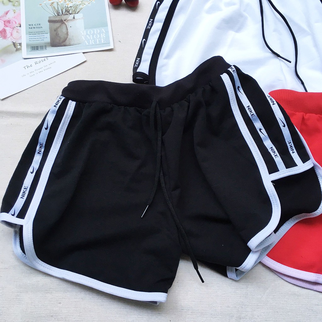 Quần đùi nữ thun da cá thể thao mặc nhà 2 bên phối viền 4 viền  - Cho Nữ  - Cho Bé Gái - freesize từ 40kg-52kg