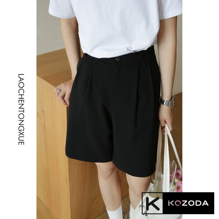 Quần đùi ống rộng lửng nữ short kiểu sooc form đen ngắn chất vải cạp lưng cao đẹp ngắn phong cách hàn quốc Kozoda Q8