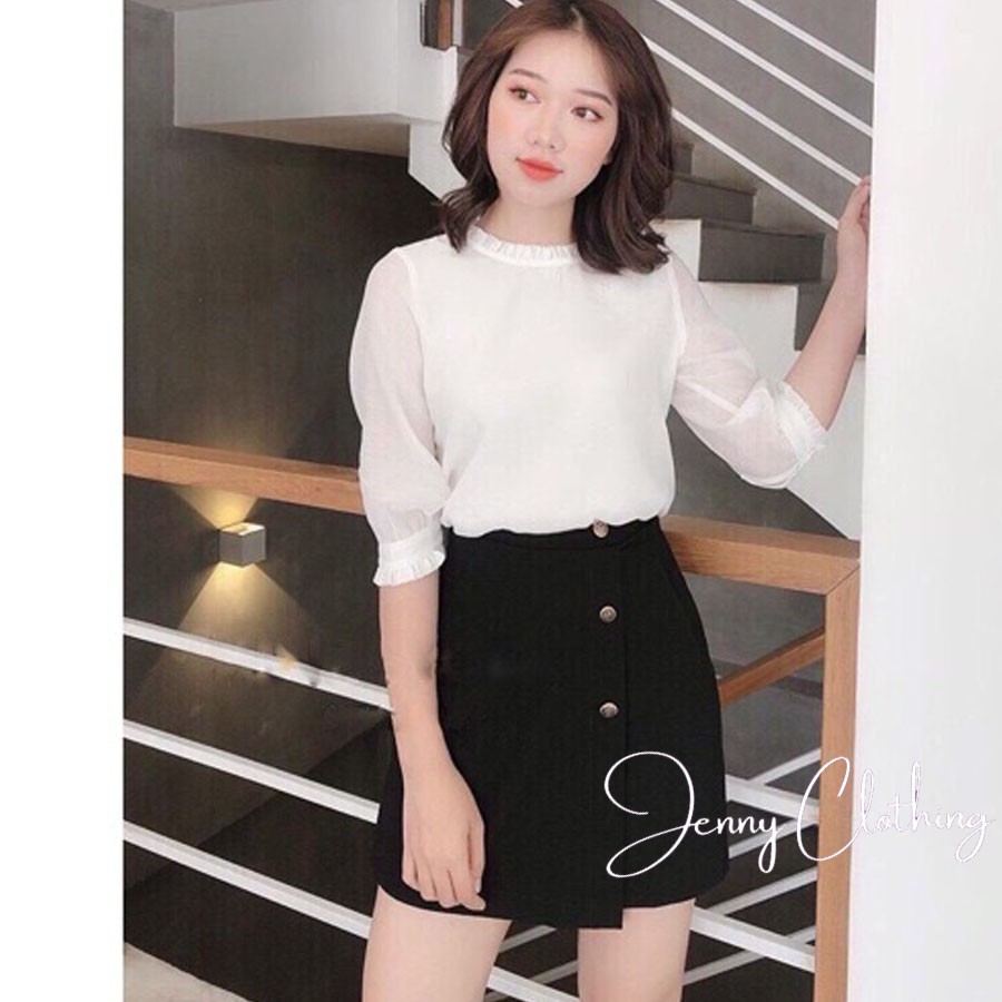 Giới thiệu Quần giả váy kiểu chân váy chữ A - Phối 3 cúc hoa - Màu đen - kem - xanh than - Chất vải tuyết mưa co dãn nhẹ