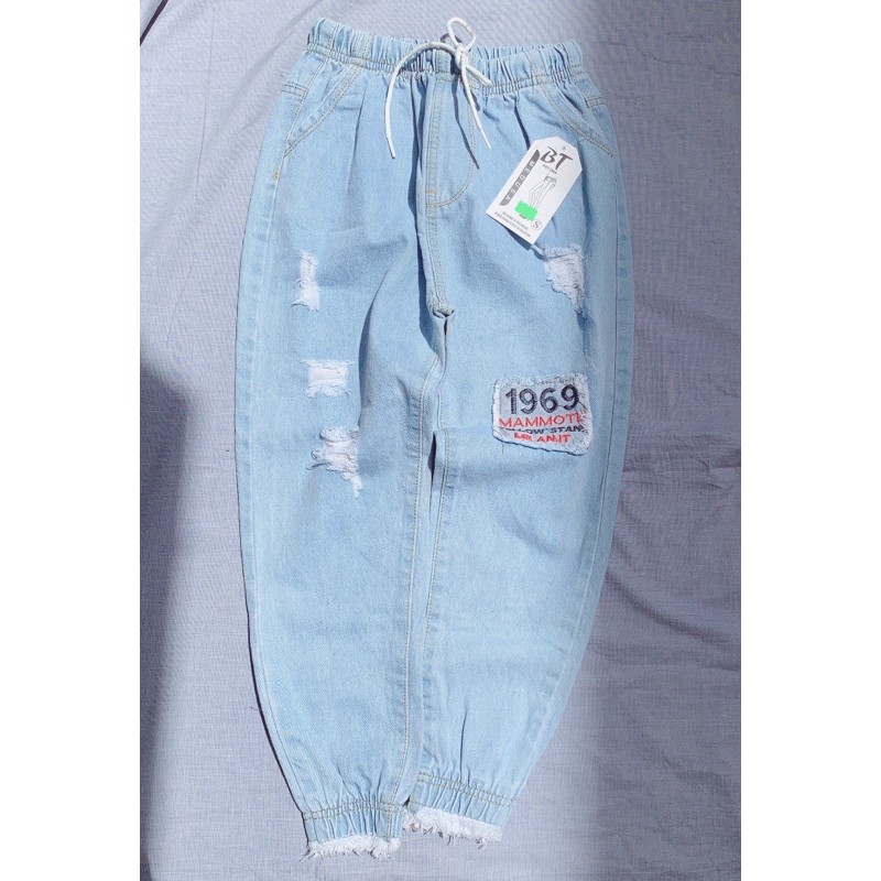 Giới thiệu Quần jean baggy quần bò cạp cao lưng thun chất cotton không co dãn màu xanh rách thêu chữ