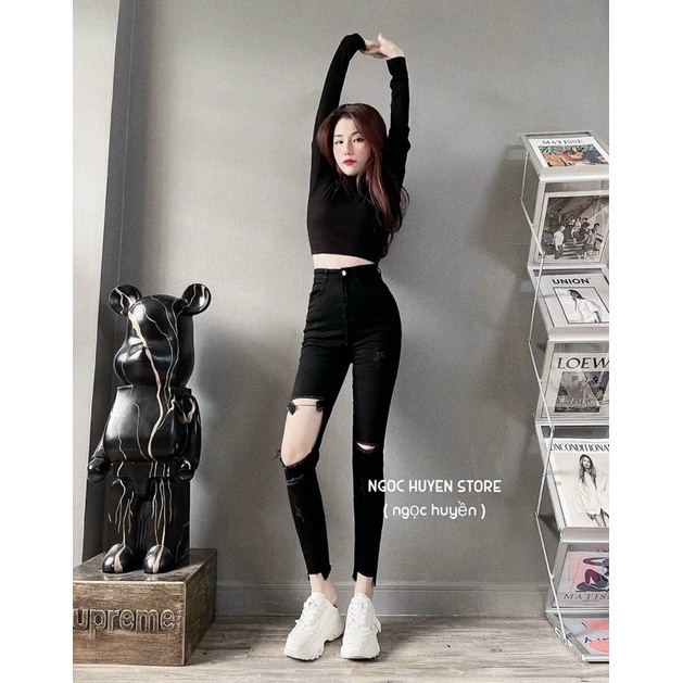 Thời Trang Nữ > Quần jeans || Quần Jean Đen rách to ô vuông
