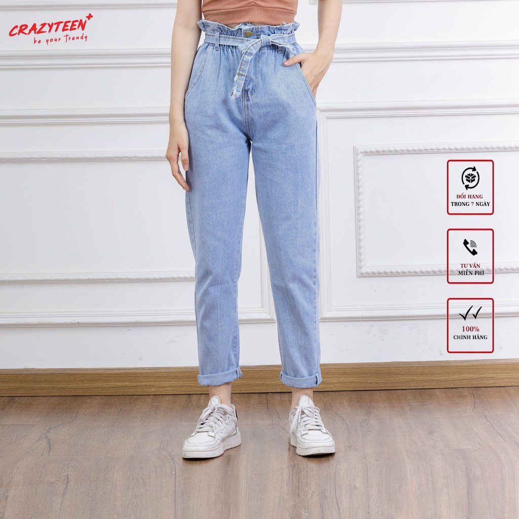 Giới thiệu Quần jean nữ CRAZYTEEN dáng baggy lưng bo chun phối nơ trẻ trung K0075