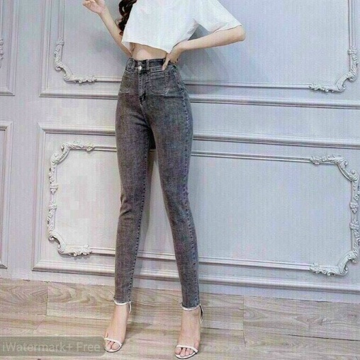 Giới thiệu quần jean nữ dài co dãn tốt phối 2 túi 2 nút trước