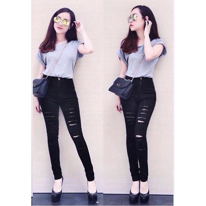 Giới thiệu quần jean nữ NHIỀU ĐƯỜNG RÁCH TRƯỚC GỐI rách kiểu 77j