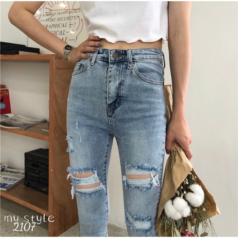 Quần jean nữ rách lưng cao co giãn kiểu quần bò form skinny body cao cấp hàng VNXK MS2107 bigsize 2Kjean