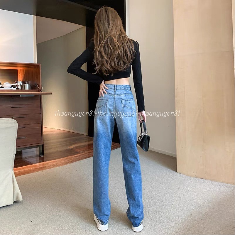 Giới thiệu Quần jean nữ suông form rộng 2 mầu loang siêu chất phong cách hàng quốc 2022