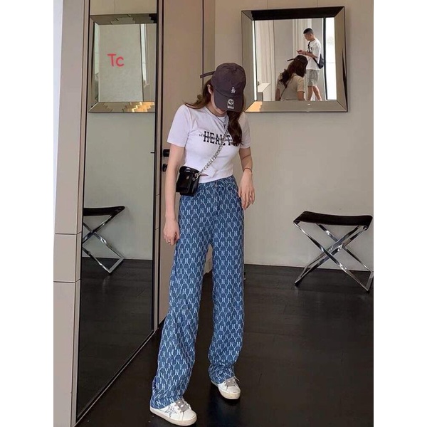 Giới thiệu Quần Jean Ống Rộng họa tiết ny , Quần Bò Nữ Ống Suông Cạp Cao Siêu Hack Dáng