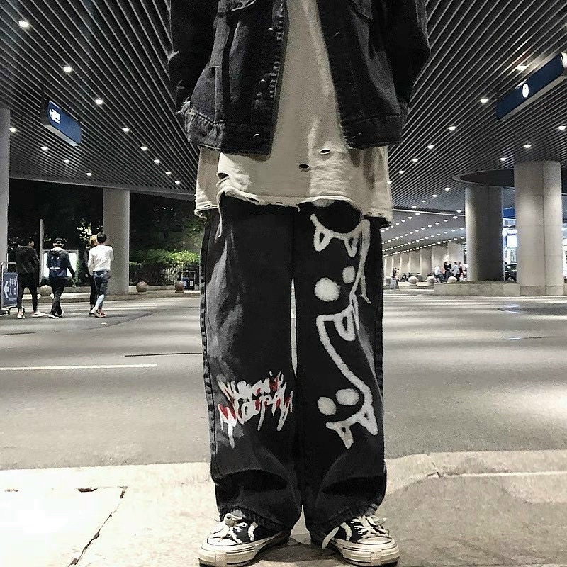 Thời Trang Nữ > Quần jeans || QUẦN JEAN ỐNG RỘNG IN HÌNH (ĐEN & XÁM)