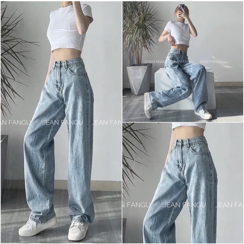 Giới thiệu Quần jean ống xuông xanh trơn cạp cao hách dáng , quần bò ống rộng quốc dân hàng đẹp by Jean Fangu Cao Cấp