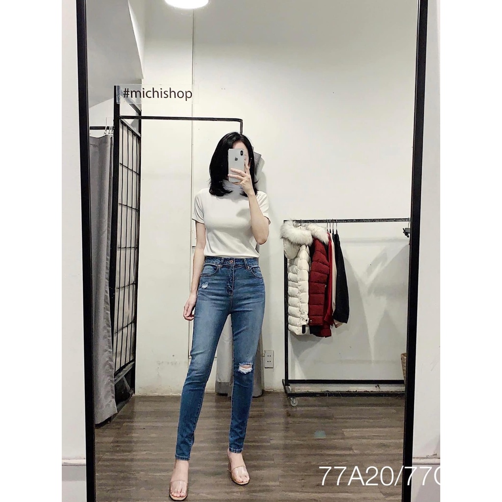 Thời Trang Nữ > Quần jeans || Quần jean skinny Bershka rách gối xanh-77Q07