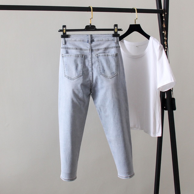 Thời Trang Nữ > Quần jeans || Quần jean thun big size màu xanh nhạt in hình cô gái size lớn 70-90kg