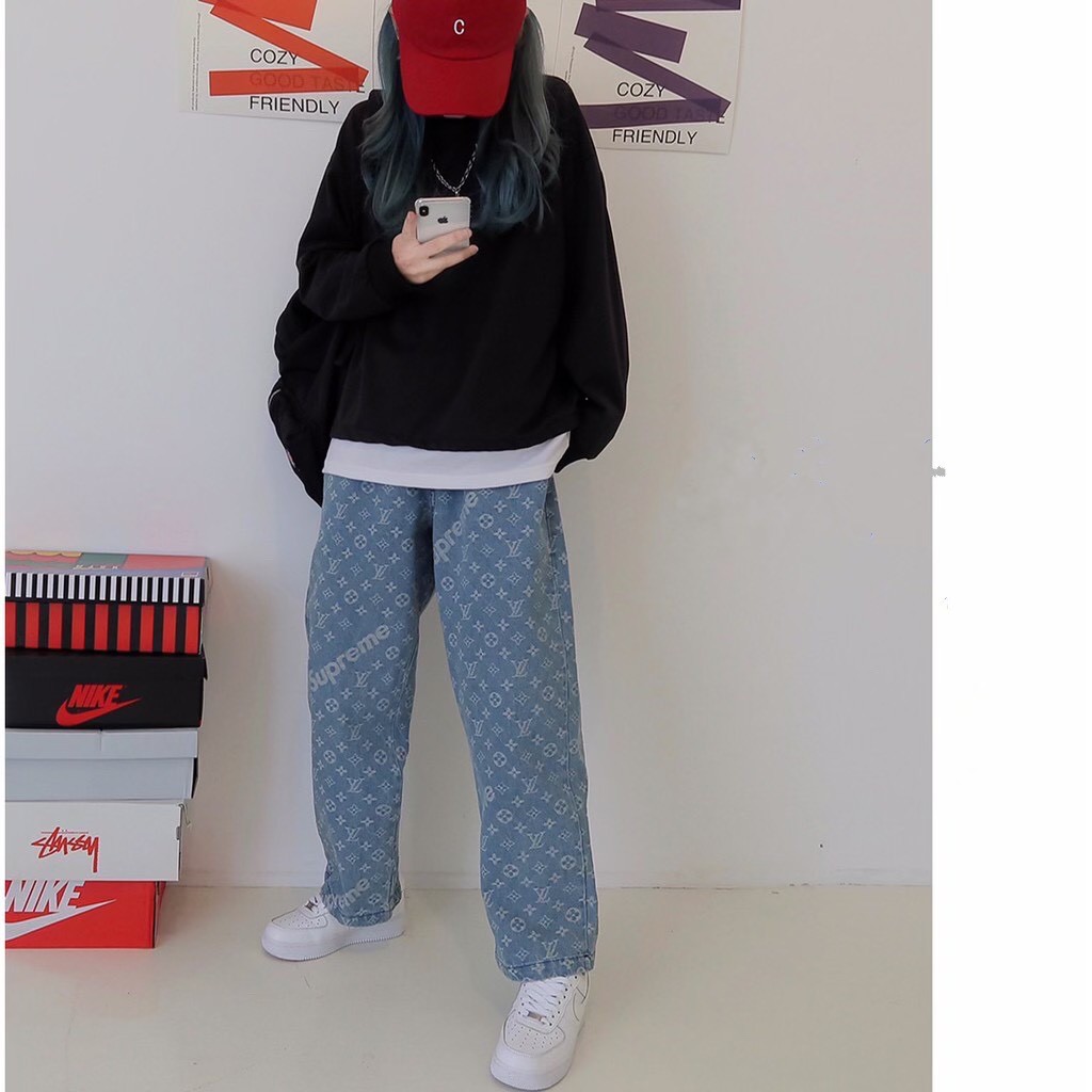 Giới thiệu Quần jeans Nữ Baggy LV_SOP dáng ống suông, rộng style hàn quốc