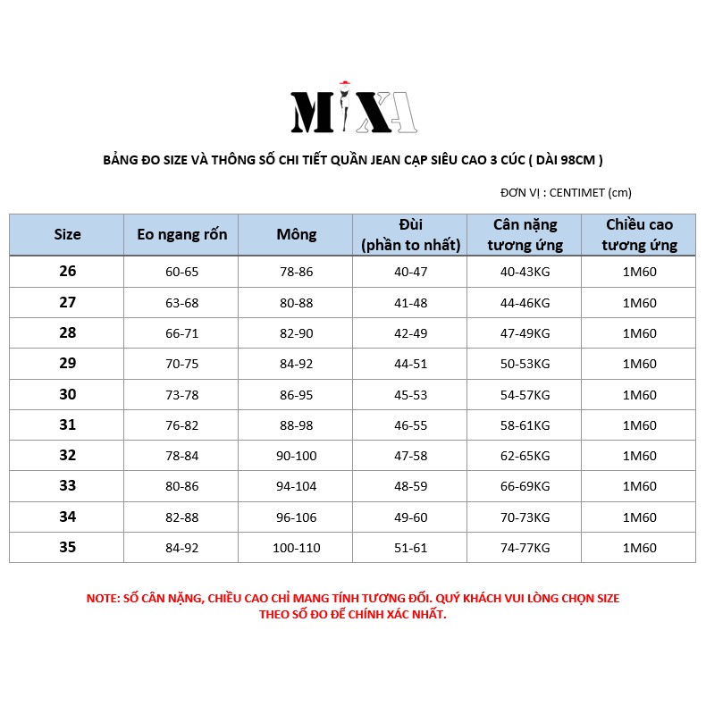 - Chiều dài quần: ~98cm (tương đương 1m60 qua mắt cá chân)