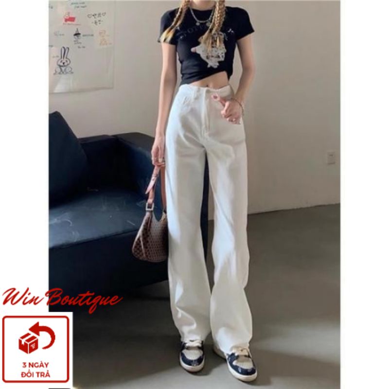 Thời Trang Nữ > Quần jeans || Quần jeans trắng cạp cao chất liệu bò dày đẹp phom suông rộng hack dáng Hot 2022