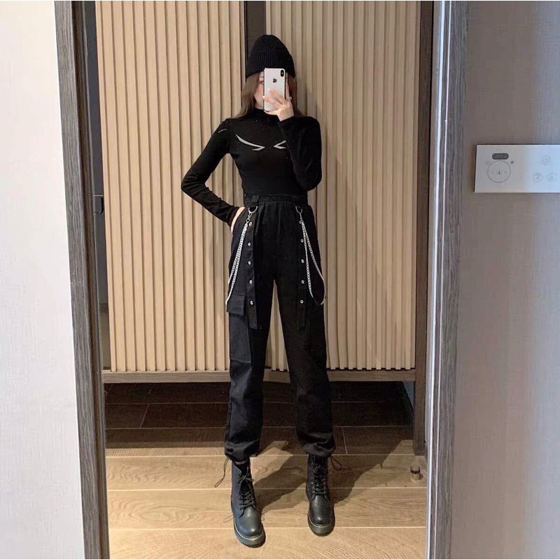 Thời Trang Nữ > Quần > Quần dài || quần jogger kaki lỗ dây xích HS60
