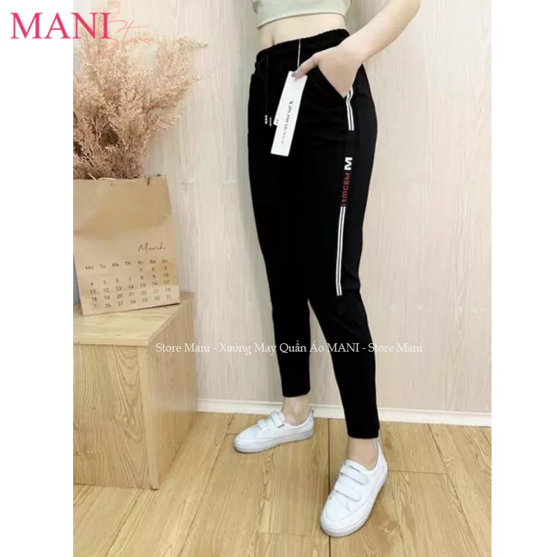 QUẦN JOGGER NỮ DÂY RÚT KIỂU QUẦN THỂ THAO NỮ DÀI VẢI UMI HÀN CO GIÃN MÀU ĐEN VIỀN SỌC CHỮ MẶC TẬP GYM Ở NHÀ ĐI CHƠI ĐẸP