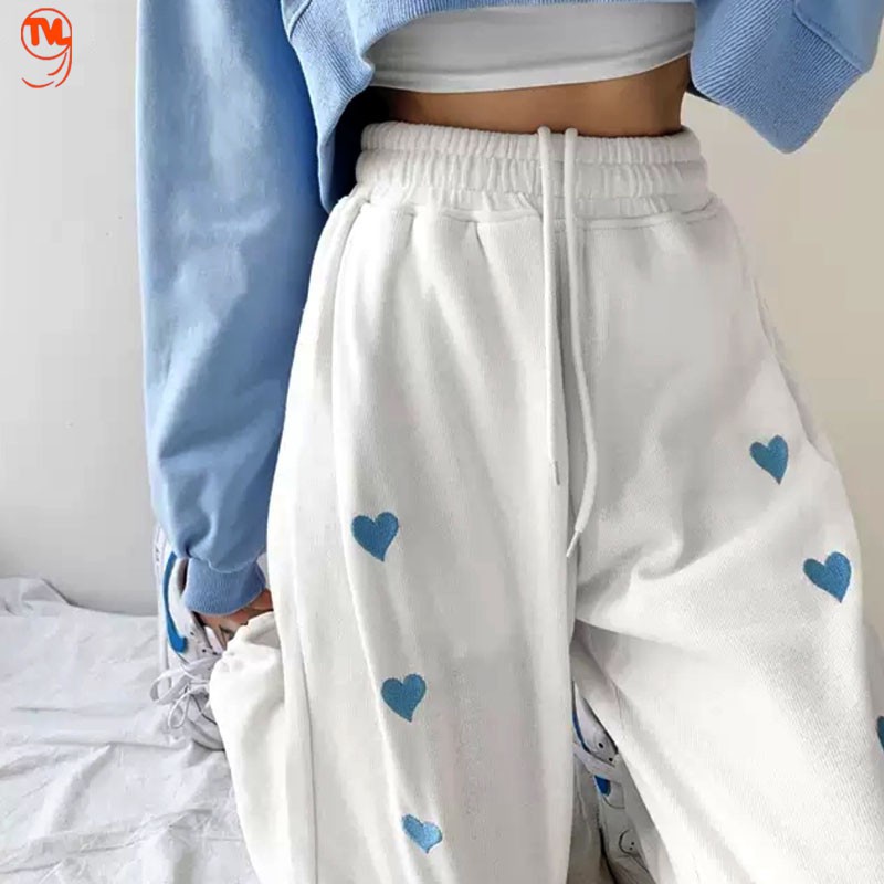 Quần jogger nữ TVL1999, quần ống rộng nữ họa tiết thêu hình trái Tym cá tính chất liệu Umi quảng châu cao cấp dày dặn.