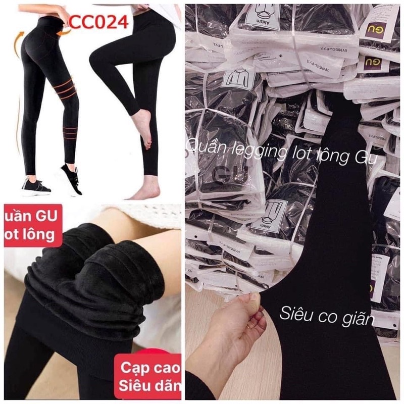 Quần legging Gu cạp cao lót lông gen bụng