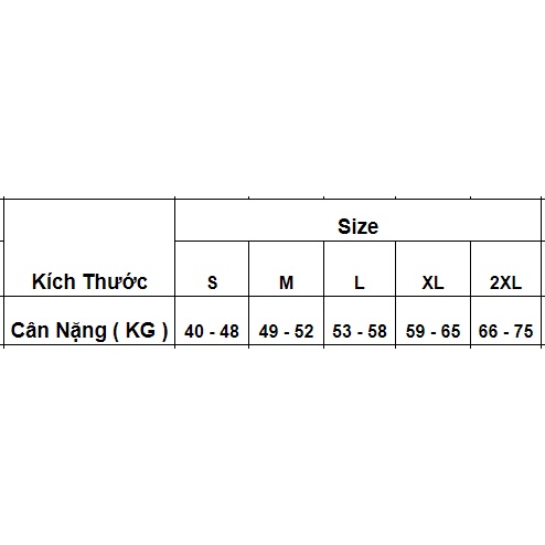 - Kích cỡ : Đủ size từ 40 - 75kg