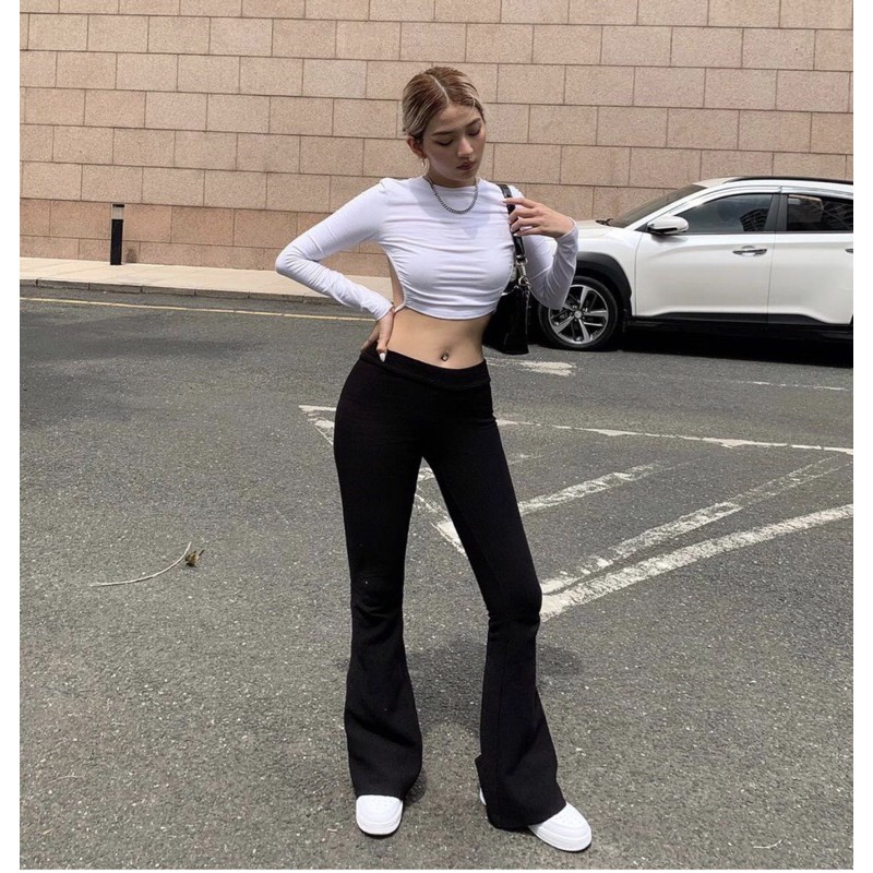 Giới thiệu Quần loe thun gân H3325 (hình thật trên sàn)