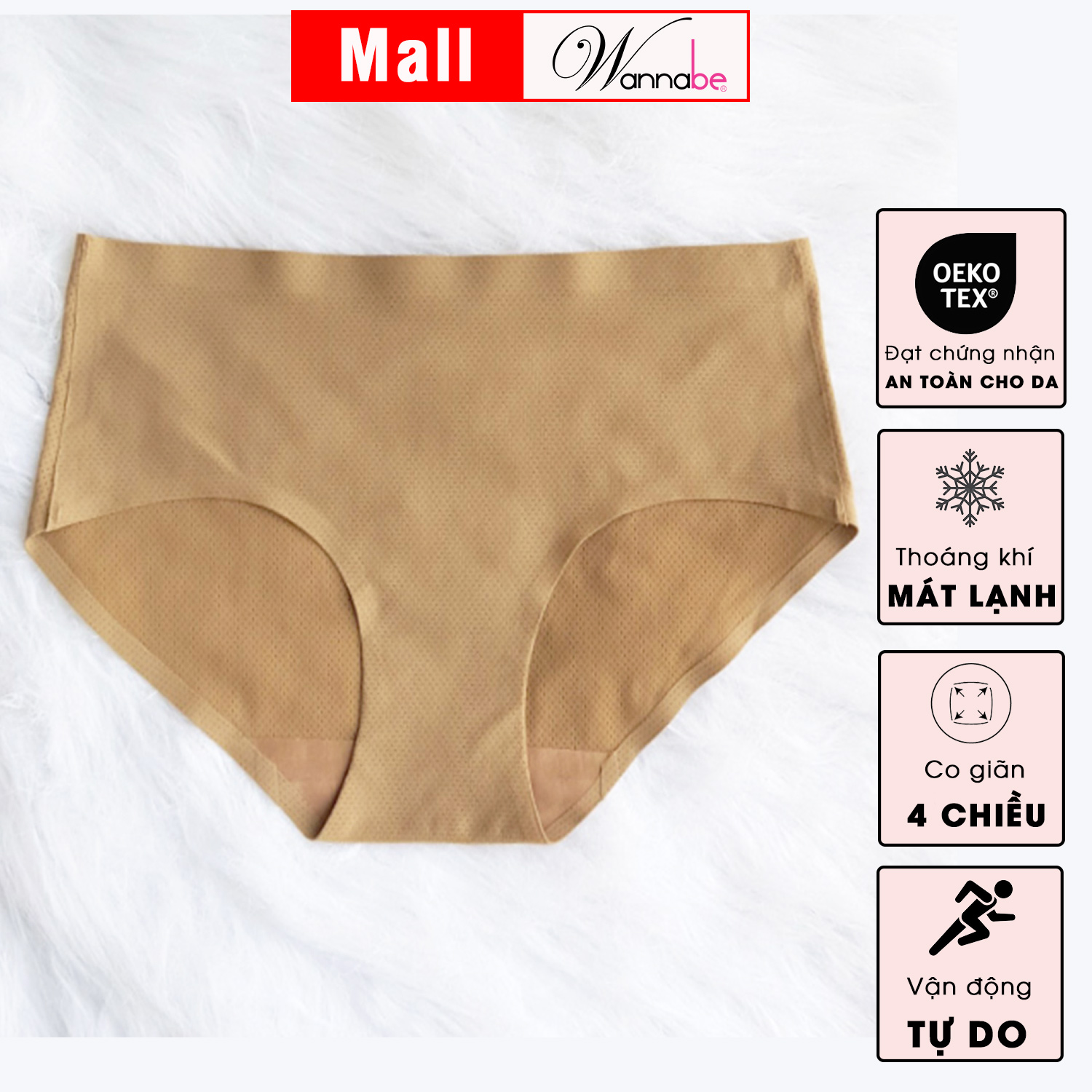 Quần lót Wannabe QLT09 thiết kế không đường may, chất thun lạnh thoáng mát thông hơi mang đến cảm giác thoải mái cho người bận. Đường cắt không viền, mềm mịn không gây hằn viền khi mặc đồ ôm body