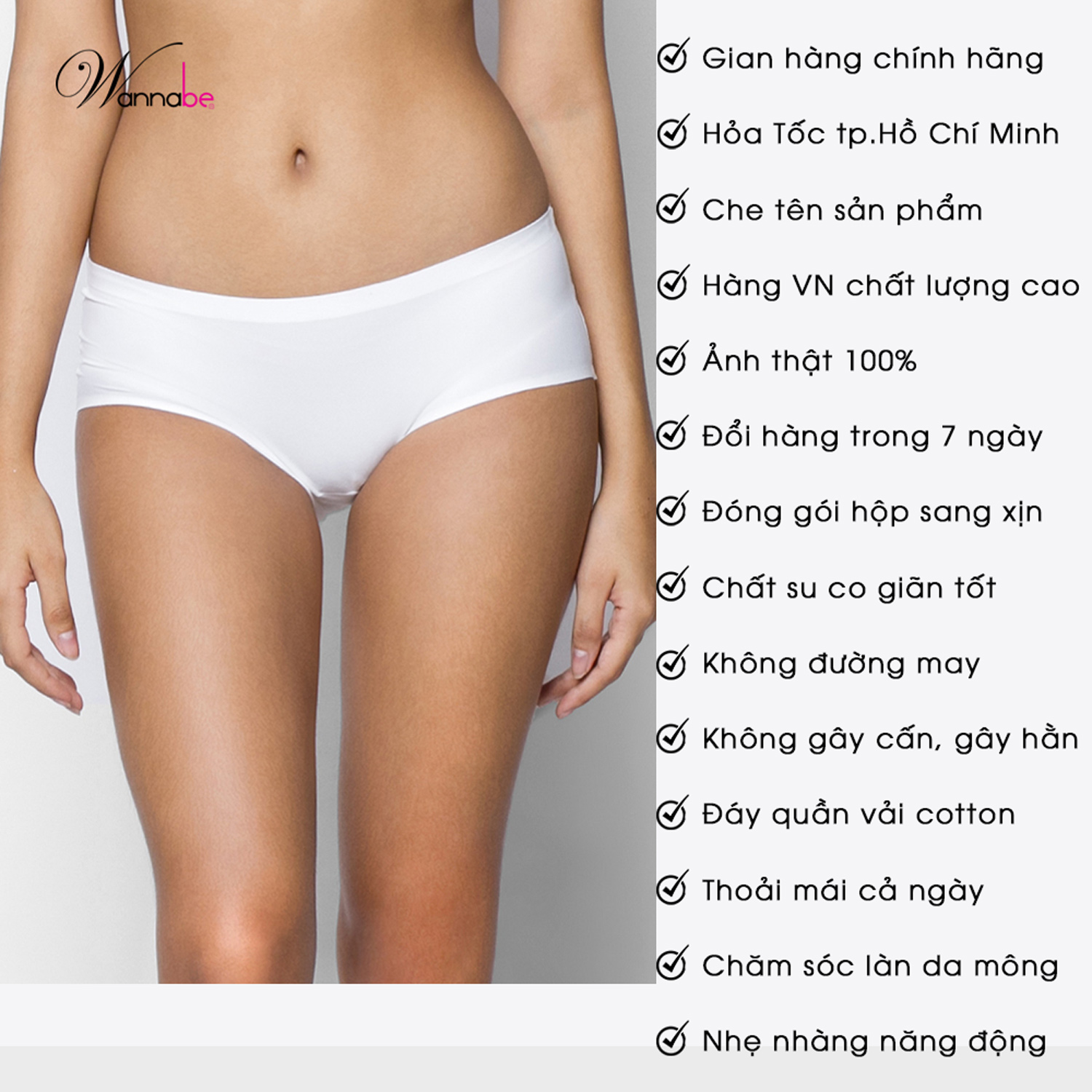- Quần lót giống hình 98%. Tất cả hình ảnh đều do WANNABE chụp sản phẩm thật.