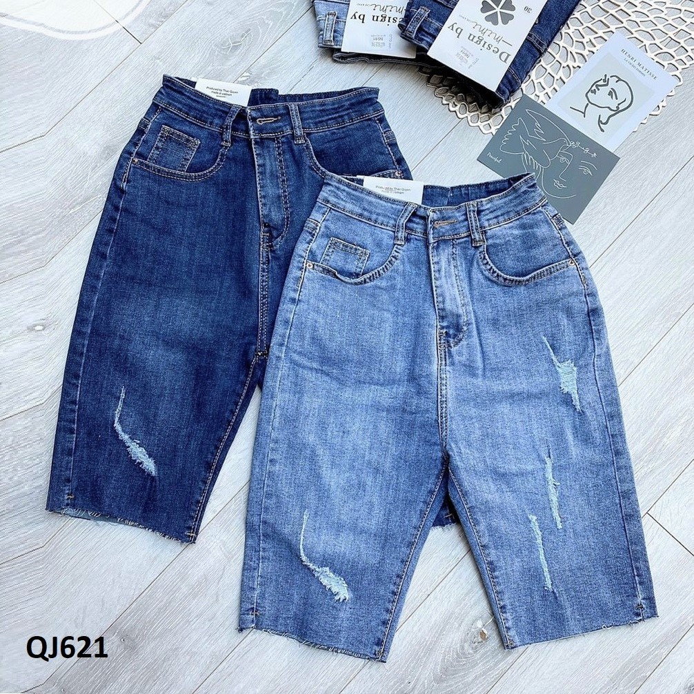 Giới thiệu Quần ngố jeans co giãn lưng cao QJ621