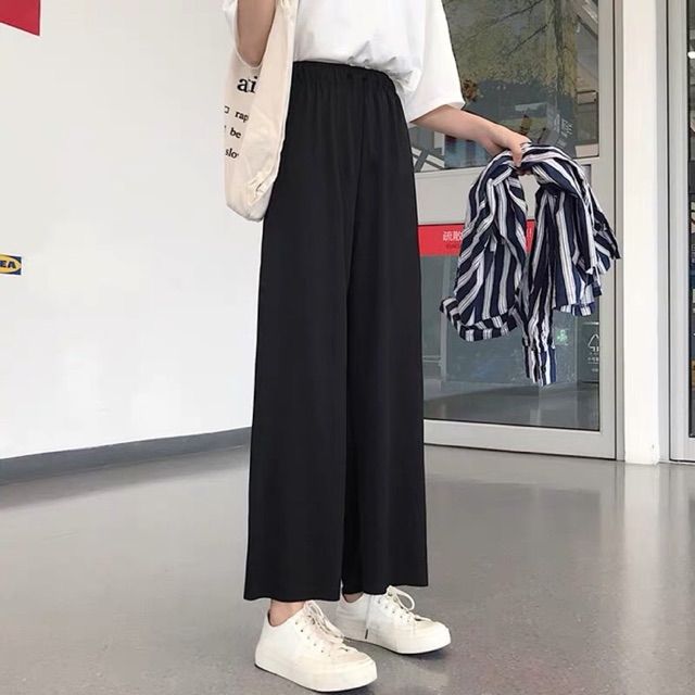 Quần Ống Rộng Đũi Lụa Mềm Màu Đen Của Nữ