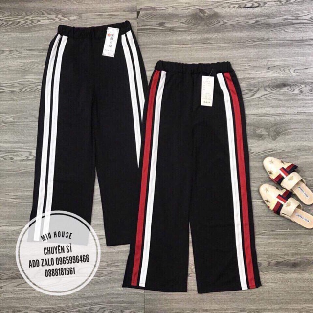 Quần ống rộng sọc xẻ gấu hàng Quảng Châu